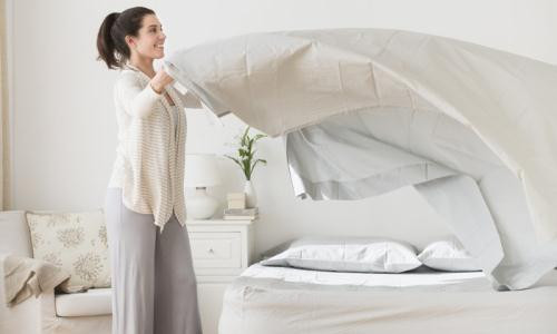 Lưu ý việc thay ga trải giường thường xuyên cũng sẽ giúp bạn cảm thấy dễ chịu hơn khi trời nóng bức. Bởi nếu để bụi bẩn bám lâu ngày sẽ khiến không khí khó lưu thông.