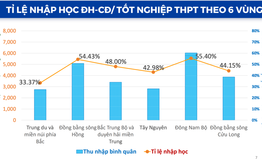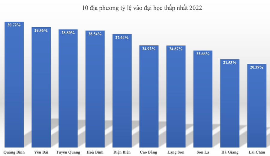 Mặt bằng chung tỷ lệ thí sinh nhập học vào các trường đại học năm 2022 của cả nước là 48,09%. Nghĩa là cứ 100 em tốt nghiệp THPT năm 2022 thì có 48 em xác nhận nhập học đại học. Cả nước có 24 địa phương nằm ở mức mặt bằng chung trở lên.