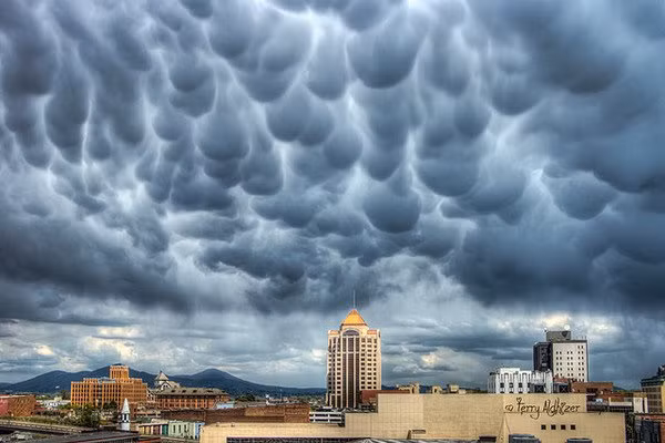 Mây vảy rồng là hiện tượng xuất hiện những bọng mây lớn xếp chồng lên nhau, đan xen khiến chúng giống bắp tay cuồn cuộn của chàng lực sĩ khổng lồ. Chúng được hình thành bởi không khí lạnh chìm xuống để tạo thành túi trái ngược với những đám mây hình thành qua sự đối lưu của không khí ấm áp.