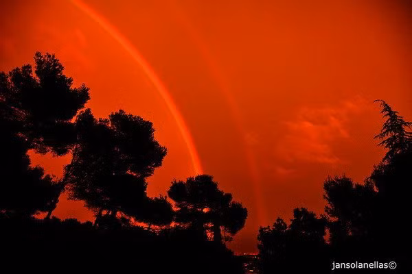 Cầu vồng đỏ là hiện tượng quang học và khí tượng giống như cầu vồng bình thường. Bản chất được sinh ra do ánh sáng Mặt trời chiếu vào hơi nước sau những trận mưa lớn. Khi đó, ánh sáng sẽ bị khúc xạ và bẻ cong, tạo ra các dải màu sắc tuyệt đẹp trên bầu trời. Cầu vồng đỏ xảy ra khi mưa kết thúc đúng lúc mặt trời đang lặn, gần với đường chân trời.