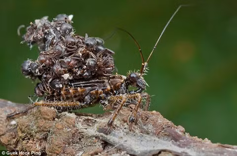 Loài nhện sát thủ chuyên dùng nọc độc để giết các con mồi chủ yếu là kiến và sau đó chúng sẽ dùng xác chết của những con kiến mình giết để làm tấm khiên bảo vệ mình khỏi kẻ thù. Những con nhện này chỉ dài hơn 1 cm. Chúng thường sống trên cây, nơi có nguồn thức ăn vô cùng phong phú.