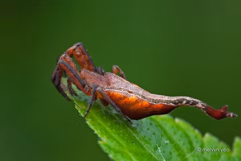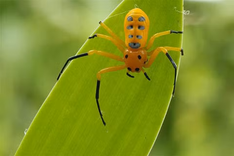 Đây là một trong những loài nhện có ngoại hình trông khá tươi sáng và thú vị. Nhiều người còn nói rằng chú nhện này trông như đang hóa trang thành bọ rùa trong mùa Halloween vậy. Loài này đã được phát hiện lần đầu tiên trong một khu rừng được bảo tồn tại Singapore vào năm 1924, chúng thường sống trong các tán lá cây nhỏ.
