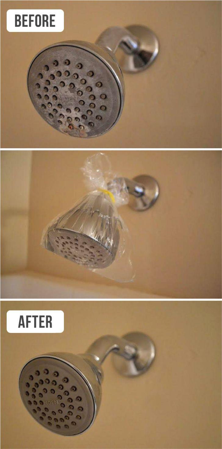 Loại bỏ cặn vôi tích tụ từ vòi hoặc vòi hoa sen bằng giấm là cách hữu hiệu nhất. Thông thường, bạn nên ngâm vòi hoa sen trong giấm khoảng 20 phút là được.