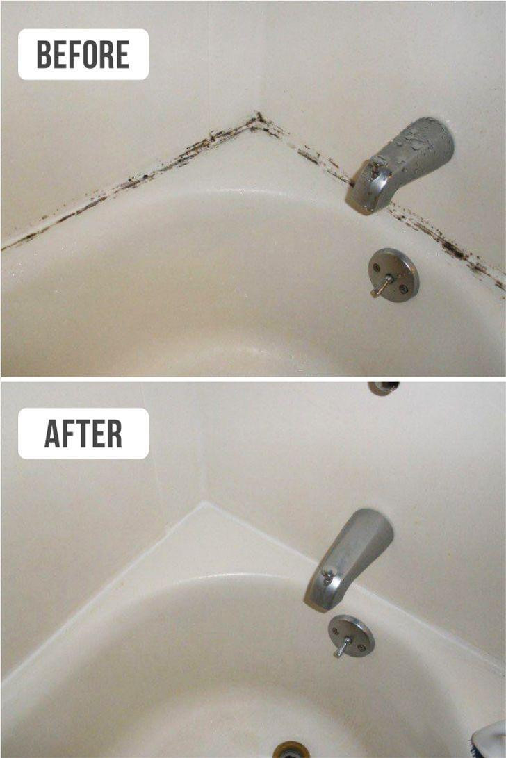 Lấy một ít bông gòn và tạo thành những quả bóng nhỏ có đường kính khoảng 1cm. Nhúng chúng vào thuốc tẩy, đặt lên những nơi cáu bẩn, nấm mốc nhiều ở bồn tắm và để qua đêm. Sáng hôm sau những vết bẩn, nấm mốc sẽ biến mất, bạn chỉ cần dùng bàn chải đánh răng chà thật sạch.