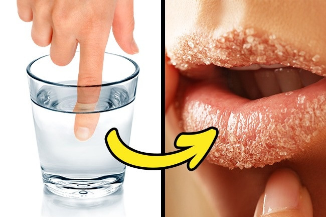 9. Làm môi mịn màng. Nhúng ngón tay bạn vào nước, sau đó nhúng vào đường cát rồi nhẹ nhàng mát xa môi của bạn theo chuyển động hình tròn. Phương pháp này sẽ là cứu tinh nếu bạn có đôi môi khô và nứt nẻ vì khi đó đường có vai trò như một dụng cụ chà nhẹ nhàng.