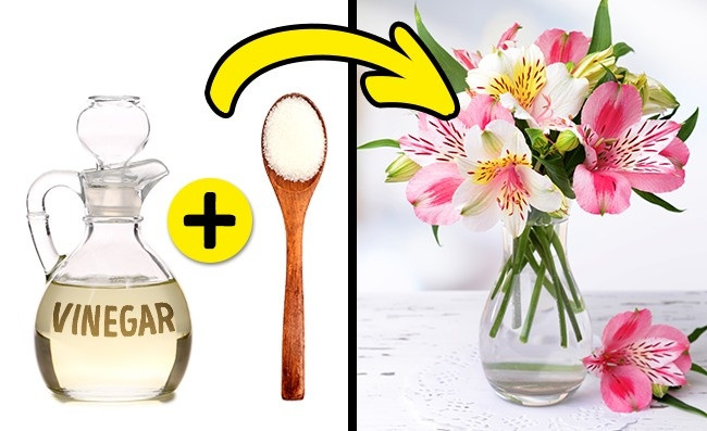 2. Làm hoa tươi lâu. Đường có thể giữ hoa tươi lâu, chỉ cần cho 3 thìa đường và 2 thìa giấm vào lọ nước cắm hoa. Đường tốt cho cành hoa và giấm sẽ ngăn ngừa sự phát triển của vi khuẩn.