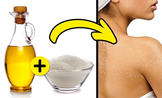 7. Làm mịn da toàn thân. Đây là phương pháp đơn giản mà bạn có thể làm ở nhà với chi phí thấp. Da bạn sẽ sạch và mềm mại vì các tinh thể đường cứng cuối cùng cũng sẽ chảy thành chất lỏng. Dùng 3 thìa dầu thực vật (tốt nhất là dầu oliu) và 4 thìa đường trộn lẫn vào nhau. Sau đó bôi hỗn hợp này lên người và nhẹ nhàng mát xa theo hình tròn. Cuối cùng tắm lại bằng nước ấm.