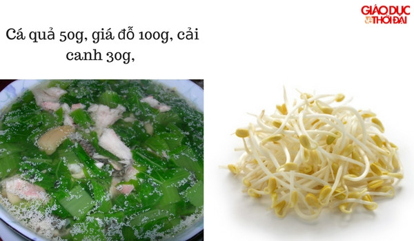 4. Canh cá quả, giá và cải canh: Làm sạch cá , xào chung giá với rau cải. Sau đó đun nồi nước sôi và thả tất cả nguyên liệu vào. Mỗi ngày ăn 1 lần.