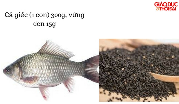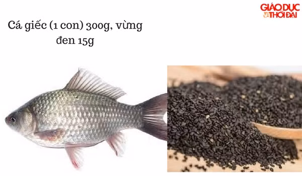 5. Canh cá giếc với vừng đen: Cá làm sạch, lọc lấy thịt cho vào nối nấu với vừng đen, thêm gừng tiêu hành gia vị