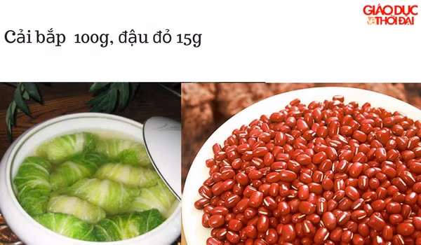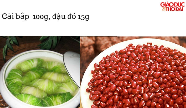 6. Canh cải bắp, đậu đỏ: Cải bắp rửa sạch, cắt khúc, đậu đỏ ngâm nước rửa sạch. Gừng, hành thái lát, sau đó phi thơm đổ nước vào bỏ đậu ninh khoảng 40 phút sau đó cho rau bắp cải vào. Mỗi ngàu ăn 1 lần.