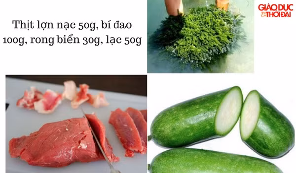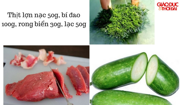 3. Canh thịt lợn, bí đao, rong biển, lạc: Làm sạch sau đó cho tất cả nấu chung thành canh, ăn vừa đủ. Dùng trong bữa ăn liên tục trong 7 ngày.