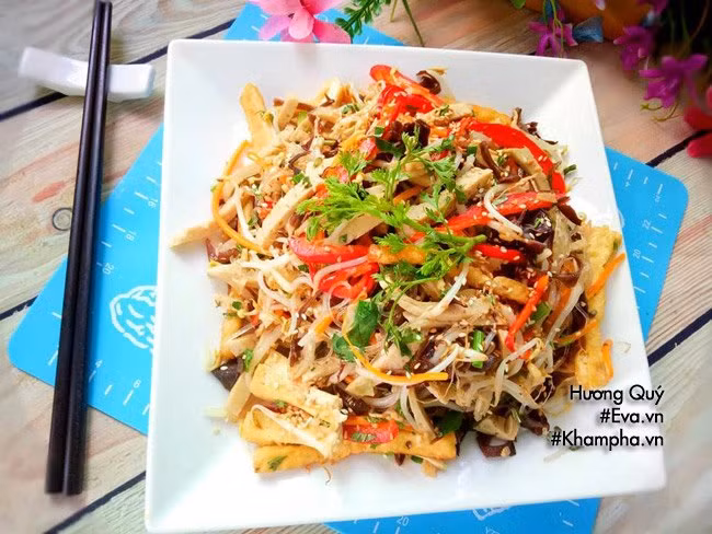 - Đậu phụ: 1 cái - Mộc nhĩ: 3-4 cái - Cà rốt: 1 củ - Giá đỗ: 100g - Dưa chuột: 1 quả - Hành, rau răm, rau mùi: 1 ít - Ớt chuông: 1/2 quả - Hành khô: 1 củ - Gia vị: Dầu ăn, dầu hào, bột nêm, bột canh, mì chính.