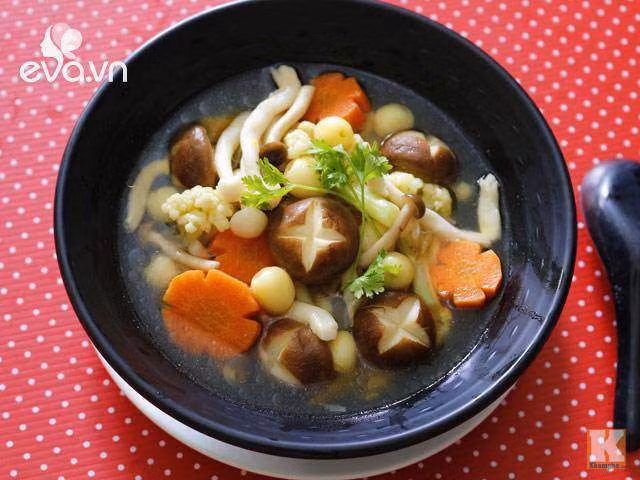 Canh nấm chay có vị ngọt tự nhiên từ rau củ, nấm, vị bùi bùi của hạt sen thơm ngon và bổ dưỡng.