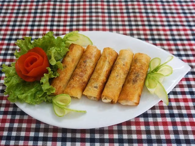 Giờ chỉ việc xếp từng chiếc nem chay lên đĩa khi ăn chấm kèm với nước tương.