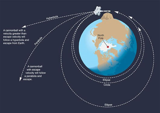 Newton không hề có ý định tạo ra một loại siêu vũ khí nhằm bắn những kẻ xâm lược ngoài hành tinh! Khẩu pháo của ông là một ý tưởng thí nghiệm nhằm giải thích làm thế nào để đưa một vật thể vào một quỹ đạo quay quanh Trái Đất. Theo dự đoán của Newton, nếu cho quá ít thuốc súng thì viên đạn pháo sẽ rơi trở lại Trái Đất, nếu cho quá nhiều thuốc súng thì viên đạn pháo bắn ra sẽ mất hút trong không gian. Tuy nhiên, nếu được bắn đi với một lượng thuốc súng vừa đủ, bạn sẽ cung cấp cho viên đạn pháo một vận tốc đủ để nó rơi theo quỹ đạo cong hướng về phía Trái Đất. Và sau đó, viên đạn pháo sẽ di chuyển mãi xung quanh Trái Đất theo một quỹ đạo nhất định.