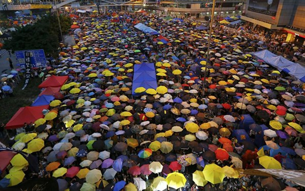 Ngày 28/9, hàng nghìn người Hong Kong đã xuống đường tại khu vực trung tâm kinh tế, tài chính, nơi đóng văn phòng chính quyền ở Hong Kong.