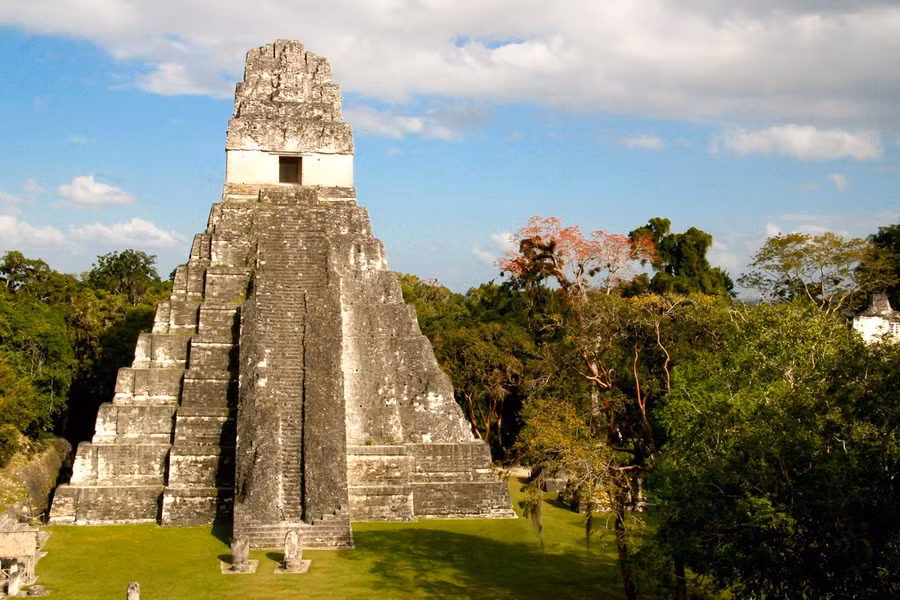 Tikal, một trong những kim tự tháp lớn nhất của nền văn minh Maya cổ đại và phần lớn được làm từ đá vôi mềm. Loại đá này rất dễ bị xói mòn do tác động của mưa và gió. Khách du lịch không những không giúp được gì mà còn góp phần lấy thêm đá ở công trình này về nhà làm kỷ niệm.