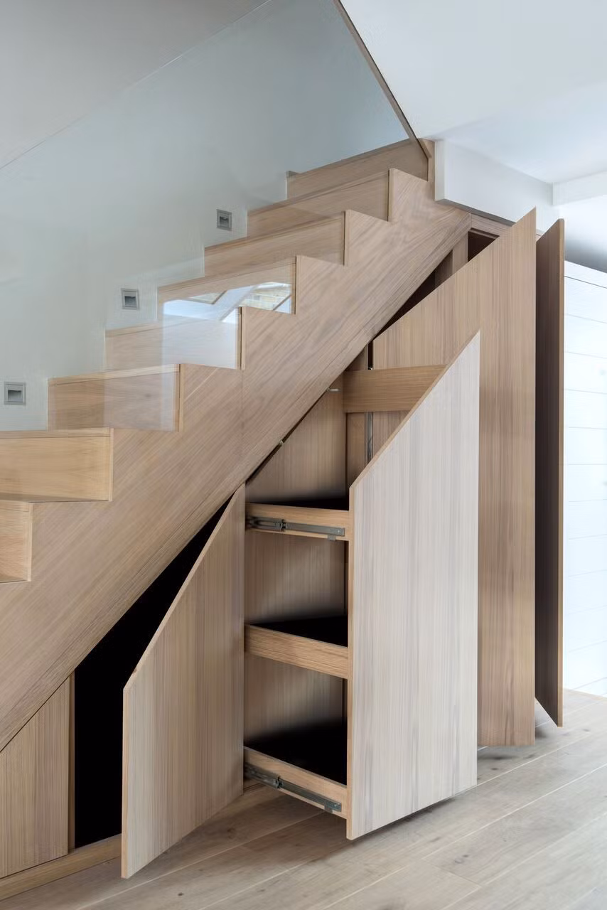 Không gian dưới cầu thang của bạn có lẽ là nơi hoàn hảo cho một thư viện nhỏ hoặc một góc đọc sách ấm cúng.