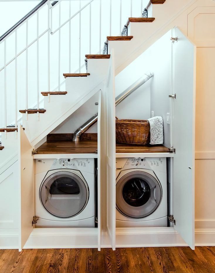 Tìm một chỗ cho máy giặt và máy sấy luôn là một cuộc đấu tranh, đặc biệt là trong những ngôi nhà nhỏ hơn, nơi bạn không có phòng giặt chuyên dụng. Gầm cầu thang chắc chắn là gợi ý thú vị trong trường hợp này.