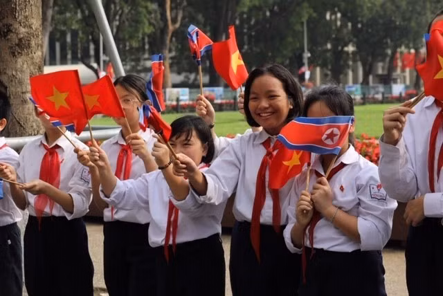 Học sinh quận Hoàn Kiếm chào đón đoàn Triều Tiên
