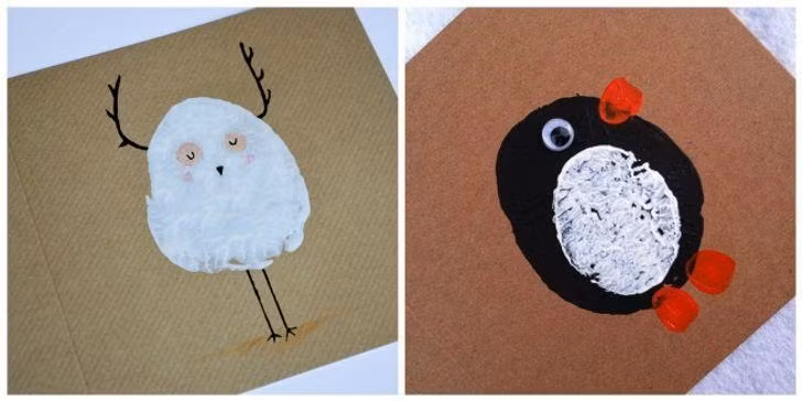 Bạn có thể tạo ra những con vật dễ thương này nếu bằng cách nhúng một nửa củ khoai tây vào bột màu sau đó in lên giấy rồi vẽ hoặc dán thêm mắt mũi, chân cho chúng là được.
