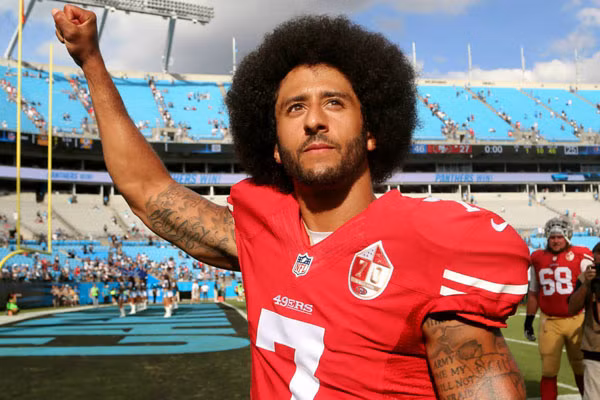 Colin Kaepernick (29 tuổi, lĩnh vực Biểu tượng) - ngôi sao của đội bóng bầu dục San Francisco 49ers (Mỹ) - gây chú ý bởi không đứng lên chào cờ trước trận đấu tại thành phố San Francisco ngày 26/8/2016. Colin lý giải hành động của anh nhằm phản đối sự đàn áp người da đen và da màu tại Mỹ. Anh thẳng thắn tuyên bố cuộc chiến này còn hơn cả sự nghiệp. Colin Kaepernick có cha là người Mỹ gốc Phi và được nuôi dưỡng bởi một cặp vợ chồng da trắng. Ảnh: The Undefeated.
