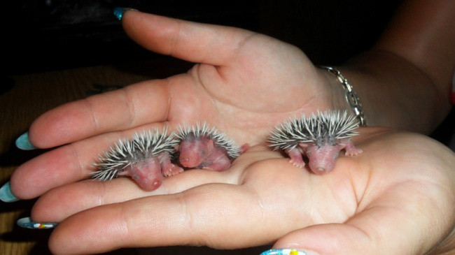 Những em nhím mới sinh bé xíu đáng yêu như thế này đấy, 3 con nhím nhỏ nằm vừa trong lòng bàn tay.