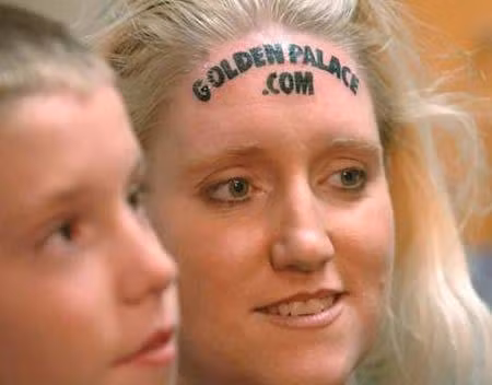 Công ty nổi tiếng thế giới GoldenPalace.com đã chấp nhận lời đề nghị kỳ quặc này và bây giờ địa chỉ trang web của họ được xăm trên khuôn mặt người phụ nữ.