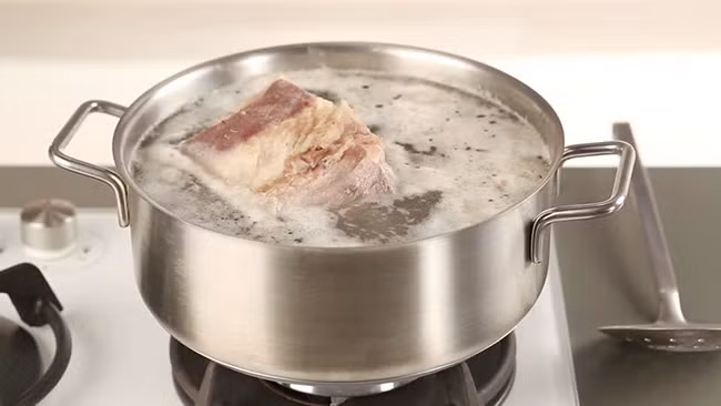 13. Muốn luộc thịt cho trắng, mềm, không hôi thì khi nước sôi, ta cho vào một muỗng canh giấm.