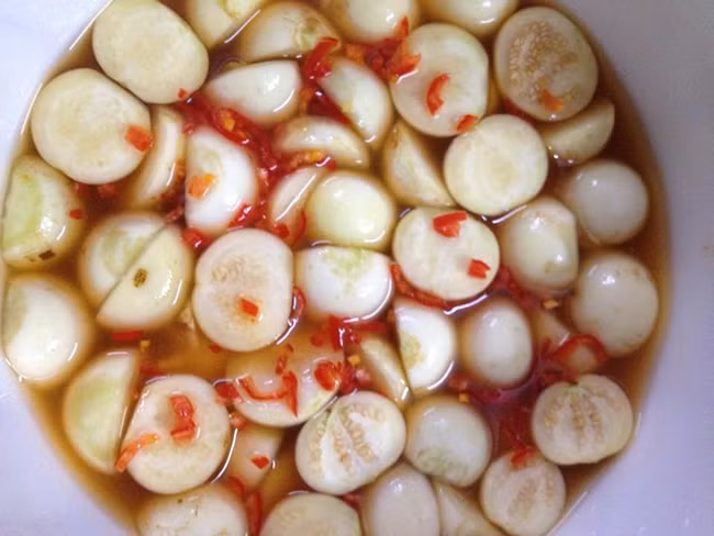 8. Muối cà nên cho nước cốt giềng + tỏi sẽ làm cà trắng và giòn ngon hơn.