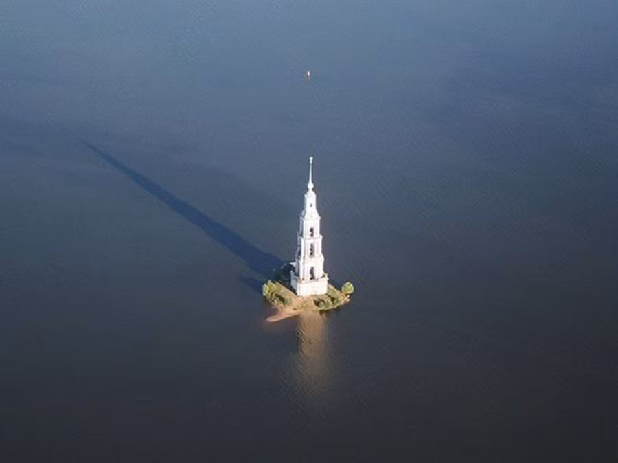 Tháp chuông Kalyazin cao 75m ở Nga là phần còn lại của nhà thờ St.Nicholas, được xây dựng khoảng giữa năm 1796 và 1800. Nơi này được coi là biểu tượng của nước Nga cổ xưa bị “nhấn chìm” sau cuộc cách mạng.