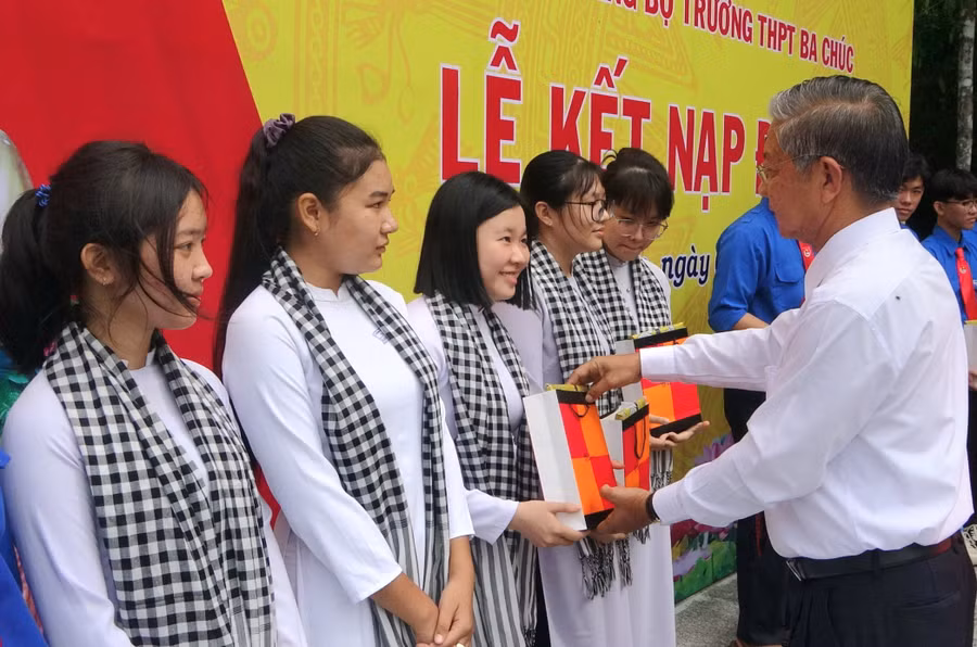 Phát biểu tại buổi lễ, thầy Nguyễn Văn Phúc – Bí thư Đảng ủy, Hiệu trưởng Trường THPT Ba Chúc (Tri Tôn), cho biết thời gian qua Nhà trường đã triển khai thực hiện tốt công tác xây dựng Đảng, công tác bồi dưỡng phát triển đảng viên là học sinh, góp phần nâng cao chất lượng đội ngũ đảng viên, tạo nguồn nhân lực có trình độ cao, phẩm chất chính trị vững vàng, đáp ứng yêu cầu xây dựng và bảo vệ Tổ quốc trong thời kỳ mới.