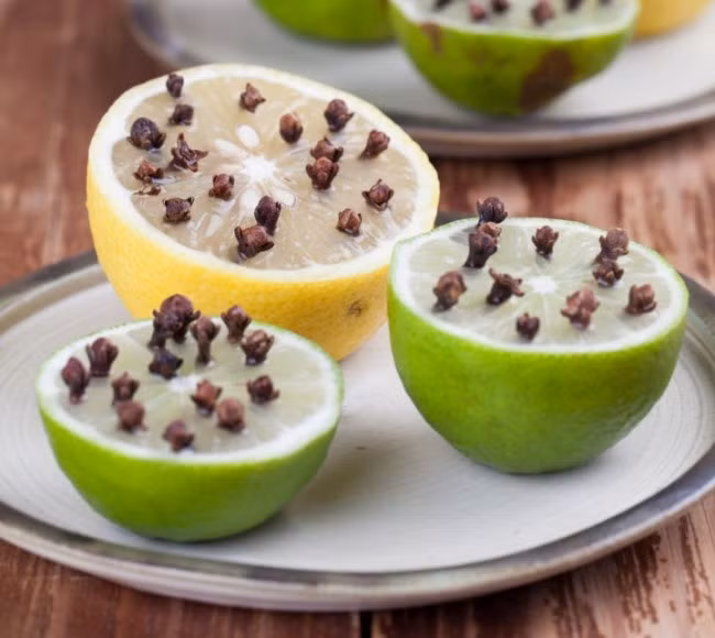 2. Đuổi côn trùng. Để đuổi kiến ra khỏi nhà, hãy đổ ít nước chanh vào bậu cửa sổ và cửa ra vào. Để đuổi muỗi, hãy cắm những cánh hoa đinh hương vào nửa quả chanh.