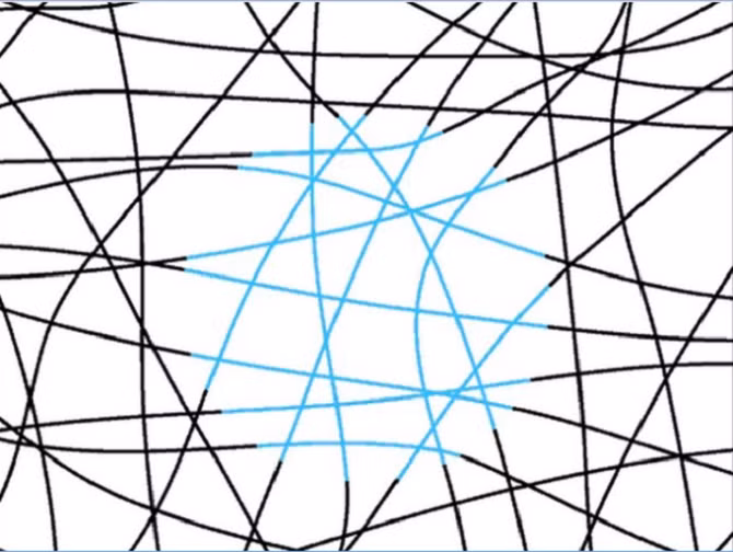 14. Ảo ảnh Sander: Đường chéo màu xanh da trời bên trái trông như dài hơn đường chéo màu xanh da trời bên phải? Điều này không hoàn toàn đúng vì cả hai đều có cùng chiều dài.