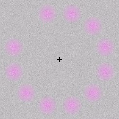 3. Hiệu ứng Troxler: Nếu như bạn nhìn đủ lâu vào trong chấm màu đỏ, vòng tròn màu xanh sẽ biến mất