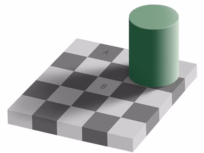 1. Ảo ảnh đổ bóng: ô vuông A và B cùng màu?