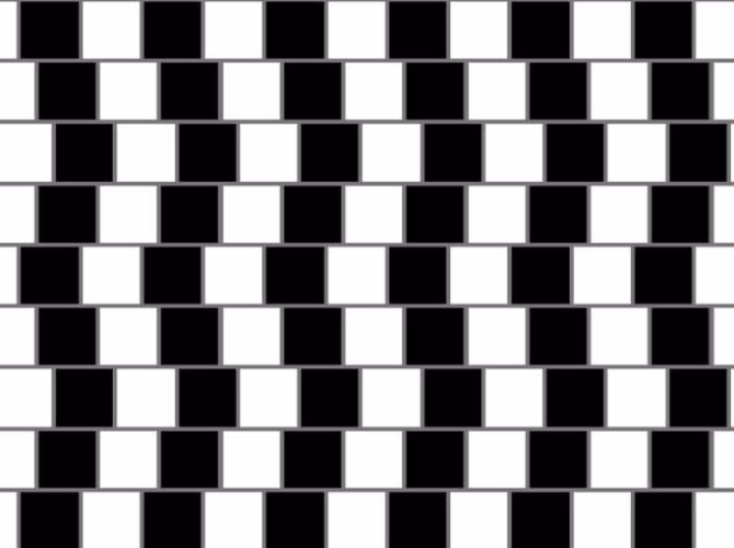 13. Ảo ảnh Zöllne: Những đường màu đen dài dường như bị lệch? Tuy nhiên thực tế chúng hoàn toàn song song với nhau.