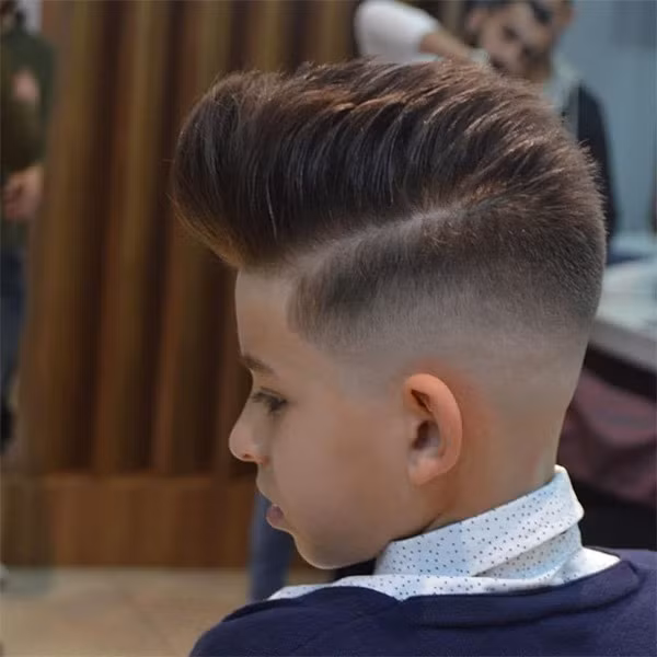 Đây là kiểu tóc mà có tạo kiểu phần tóc hai bên và gáy của bé sẽ được hớt cao lên, phần đỉnh tóc được cắt tỉa với độ dài vừa phải. Bé sẽ trông thật nổi bật, lại vừa gọn gàng, thoải mái.