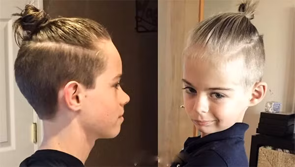 17. Tóc đẹp cho bé trai buộc chỏm với đường rãnh
