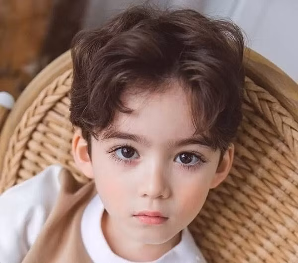 Kiểu tóc xoăn đẹp cho bé trai đánh rối nhẹ mang theo phong cách lãng tử Hàn Quốc giúp bé trai có vẻ ngoài mới lạ. Với các lọn được tạo kiểu đánh rối xoăn nhẹ mang đến cho bé trai nét đẹp tự nhiên bồng bềnh đầy gợi cảm.