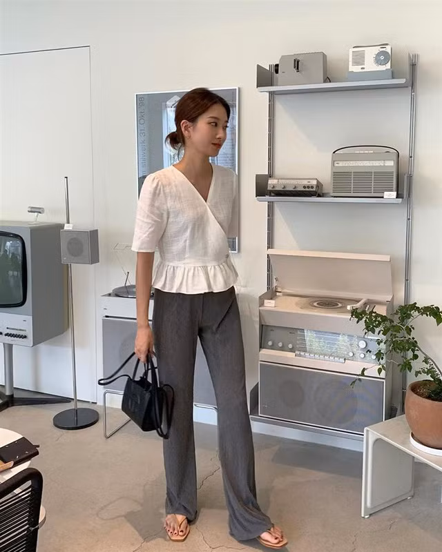 Nhiệm của bạn chỉ đơn giản là mix kiểu áo này với quần ống rộng, quần ống đứng hay chân váy phù hợp về mặt màu sắc, họa tiết là đã có được set trang phục xịn đẹp.