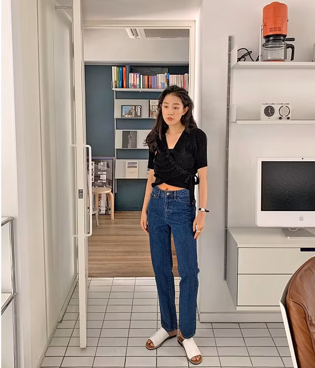 Bạn cũng không nhất thiết phải chọn những mẫu áo quá ngắn, lộ bụng, chiếc áo lửng ấy chỉ cần để lộ phần cạp cao, giúp cặp chân được kéo dài tối ưu là ổn; tổng thể vóc dáng từ đó cũng thêm phần cao ráo.