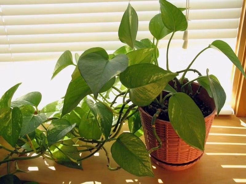 Trầu bà sống tốt ở nhiều môi trường khác nhau, có khả năng leo nhanh, rất thích hợp là một trong những lựa chọn về cây phong thủy đặt trên bàn làm việc.