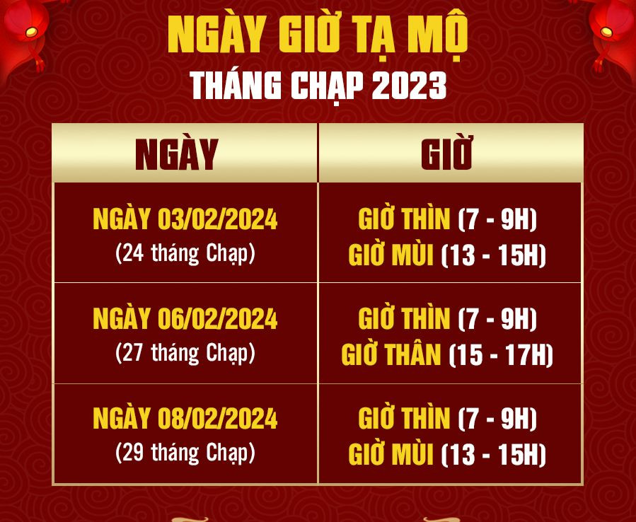 Ngày giờ đẹp tạ mộ tháng Chạp 2023