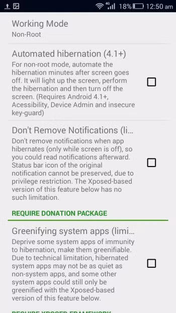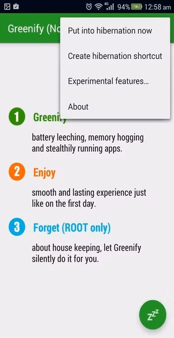 Không như 2 phần mềm kể trên, Greenify nghiêng về quản lý ứng dụng hơn là xóa bộ nhớ. Nó phát hiện và “đóng băng” các ứng dụng chạy ngầm khi không sử dụng, ngăn chúng làm lag thiết bị và hao pin.