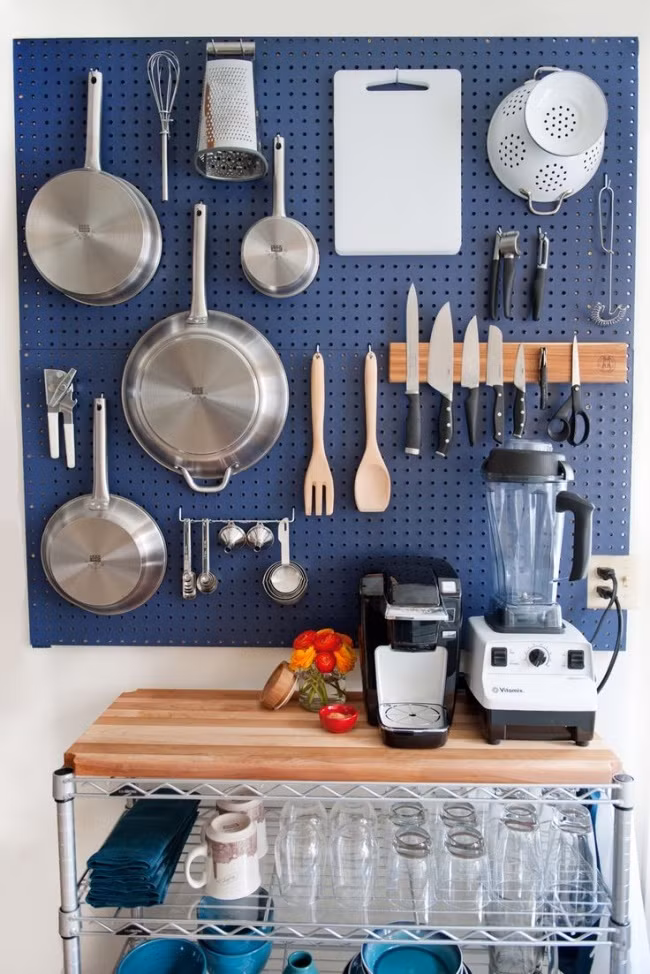 7. Một chiếc bảng có lỗ để treo dụng cụ nấu ăn là cách hoàn hảo giữ bếp của bạn ngăn nắp