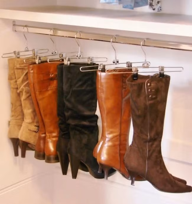 13. Sử dụng móc treo quần để treo giày cao cổ