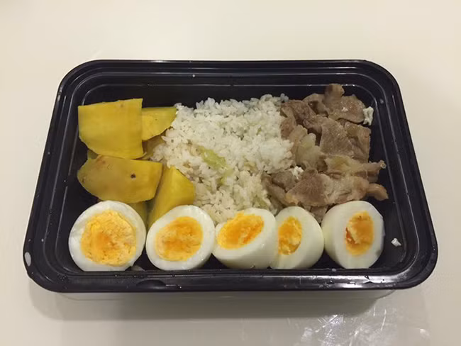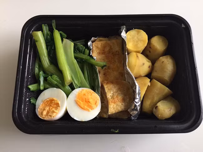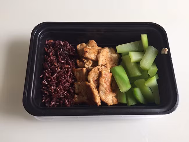 Nguồn tinh bột có thể thay đổi, ngày thì khoai lang, ngày thì cơm gạo lứt hoặc cơm gạo trắng.