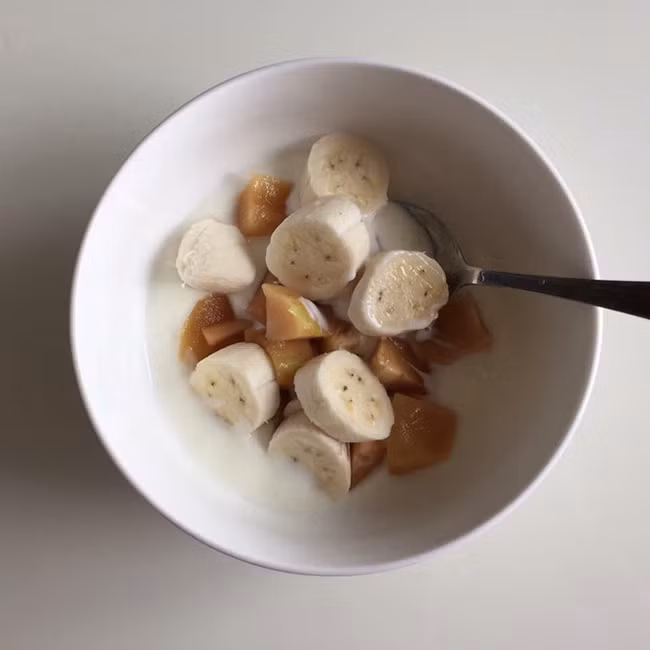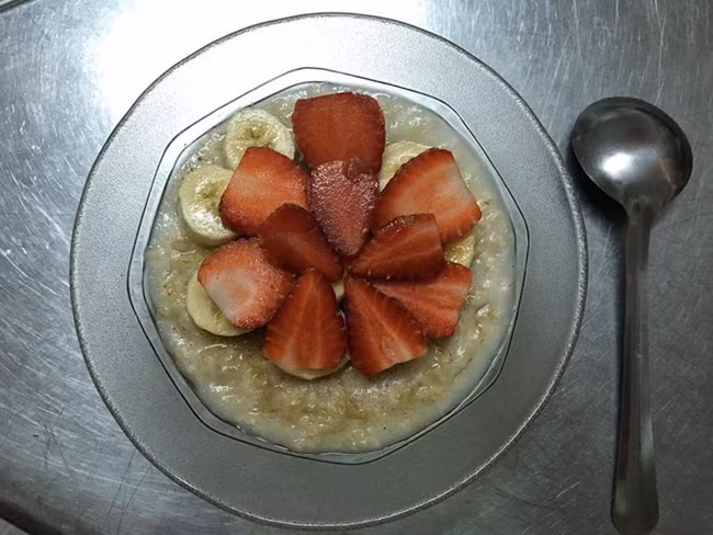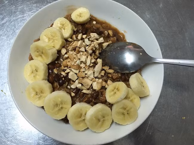 Ở một bữa sáng khác, bạn có thể nấu đơn giản hơn cháo yến mạch với chuối chín, phủ thêm chút hạt yêu thích và thưởng thức.