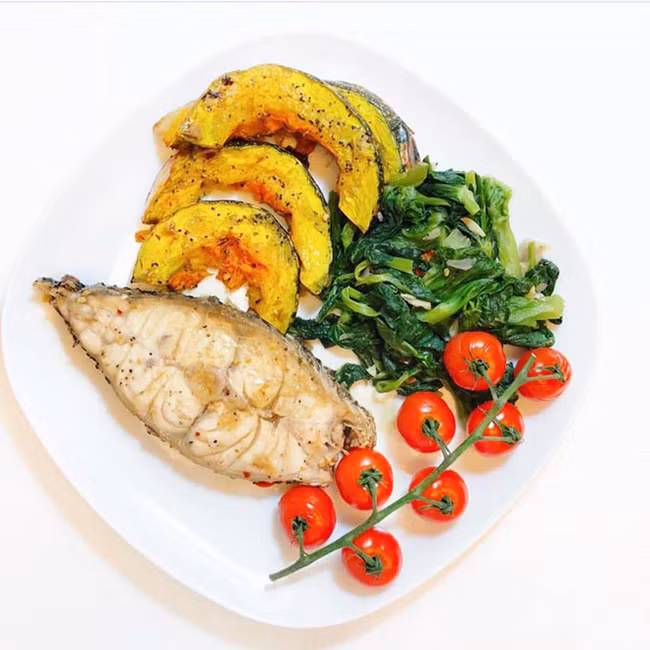 Trong những bữa ăn ít tinh bột như này, bạn có thể tận dụng để làm 2 món giàu đạm là cá và trứng mà không lo tăng cân.